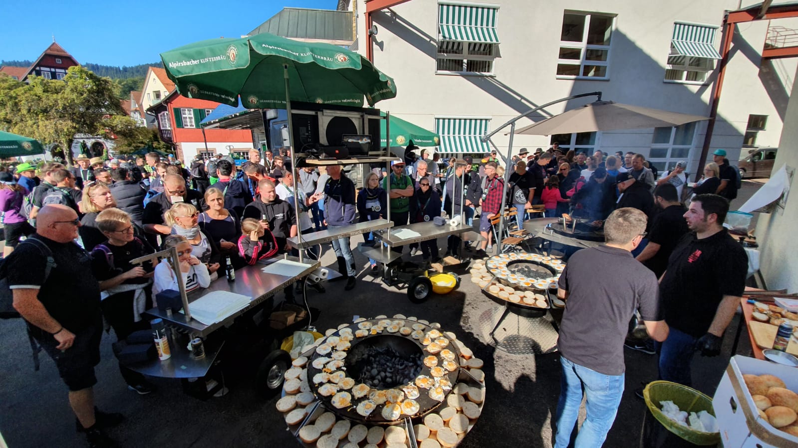 Hier durften unsere Geräte mal zeigen was in ihnen steckt... 700 hungrige und durstige Spezialisten wurden in gut zwei Stunden von uns mit leckeren, frisch zubereiteten Roastbeef-Ei-Bacon-Frühstücksburgern versorgt. Das entspricht etwa 1o Sekunden je frischem Burger....können da die großen Burgerketten noch mithalten? Ein Großes Lob an unsere Jungs, die mit Herz und Seele dabei sind. Das Eier-Aufschlagen war schon eine Liga für sich:-) und vielen, vielen Dank an das Team von Alpirsbacher! Wir freuen uns schon auf neue Herausforderungen.